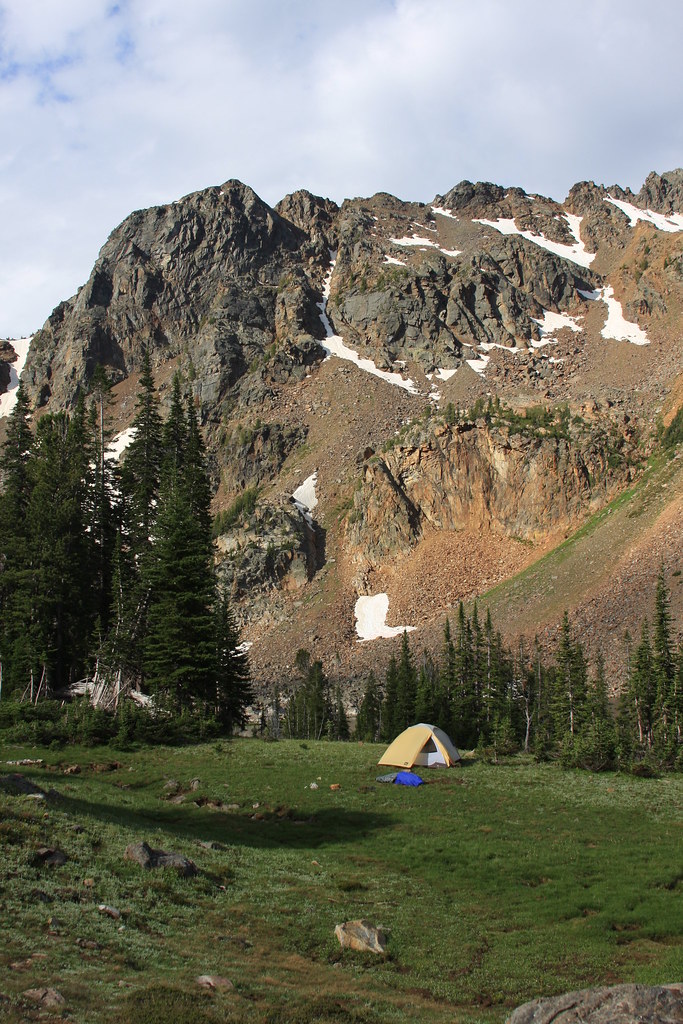 The middle mountain cabins are nestled in a small grassy opening, near a small pond and camp five run.